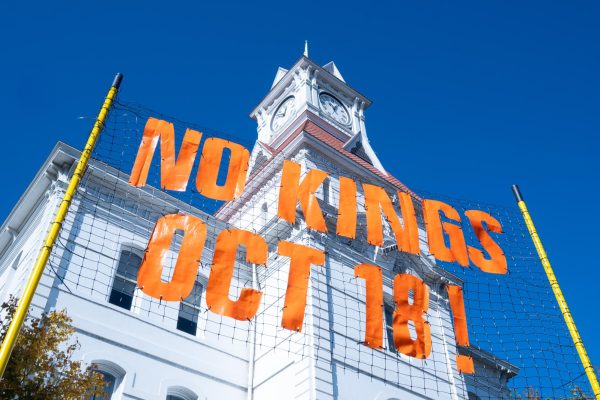 On October 18 the slogan “No Kings” unified hundreds of people downtown in Corvallis, Oregon.